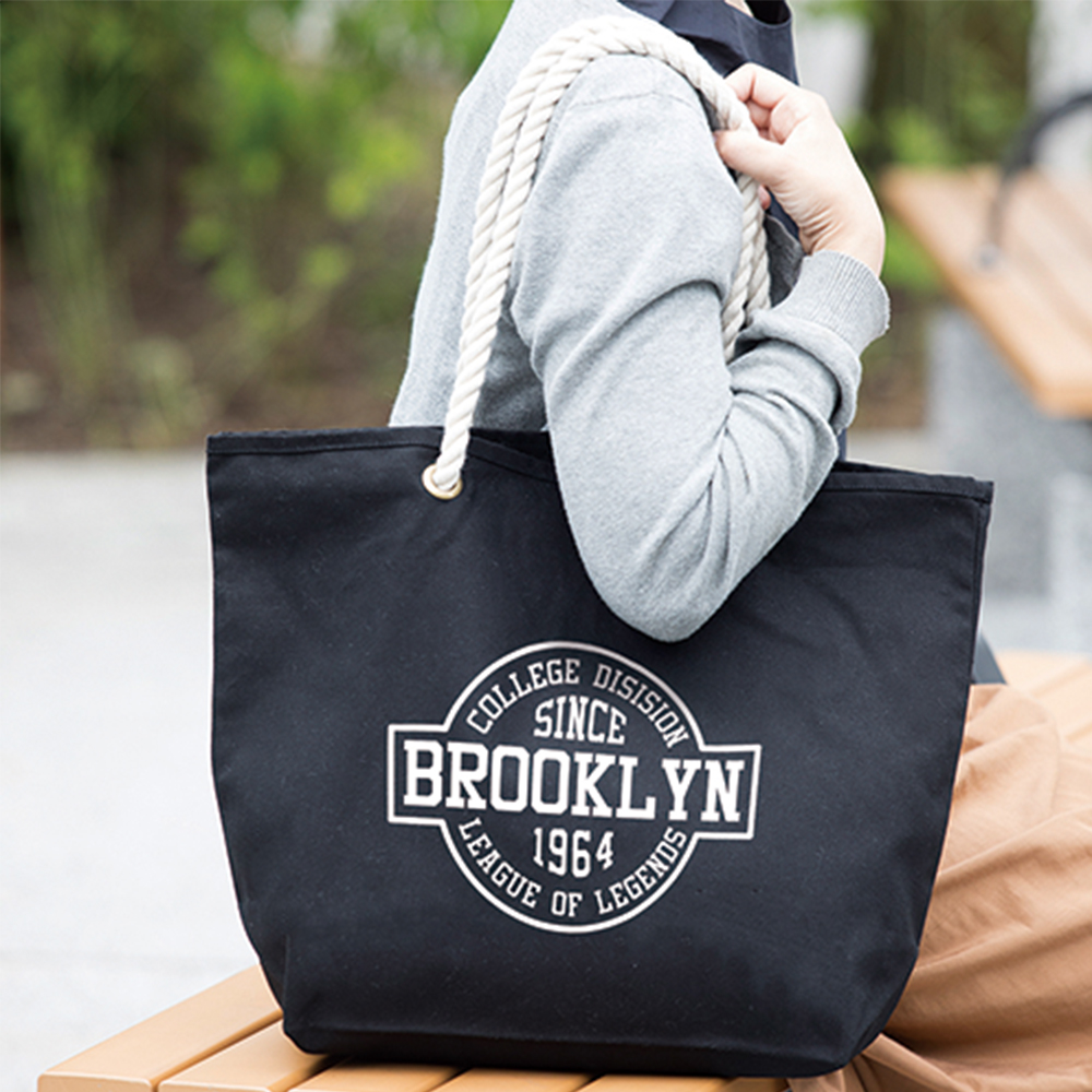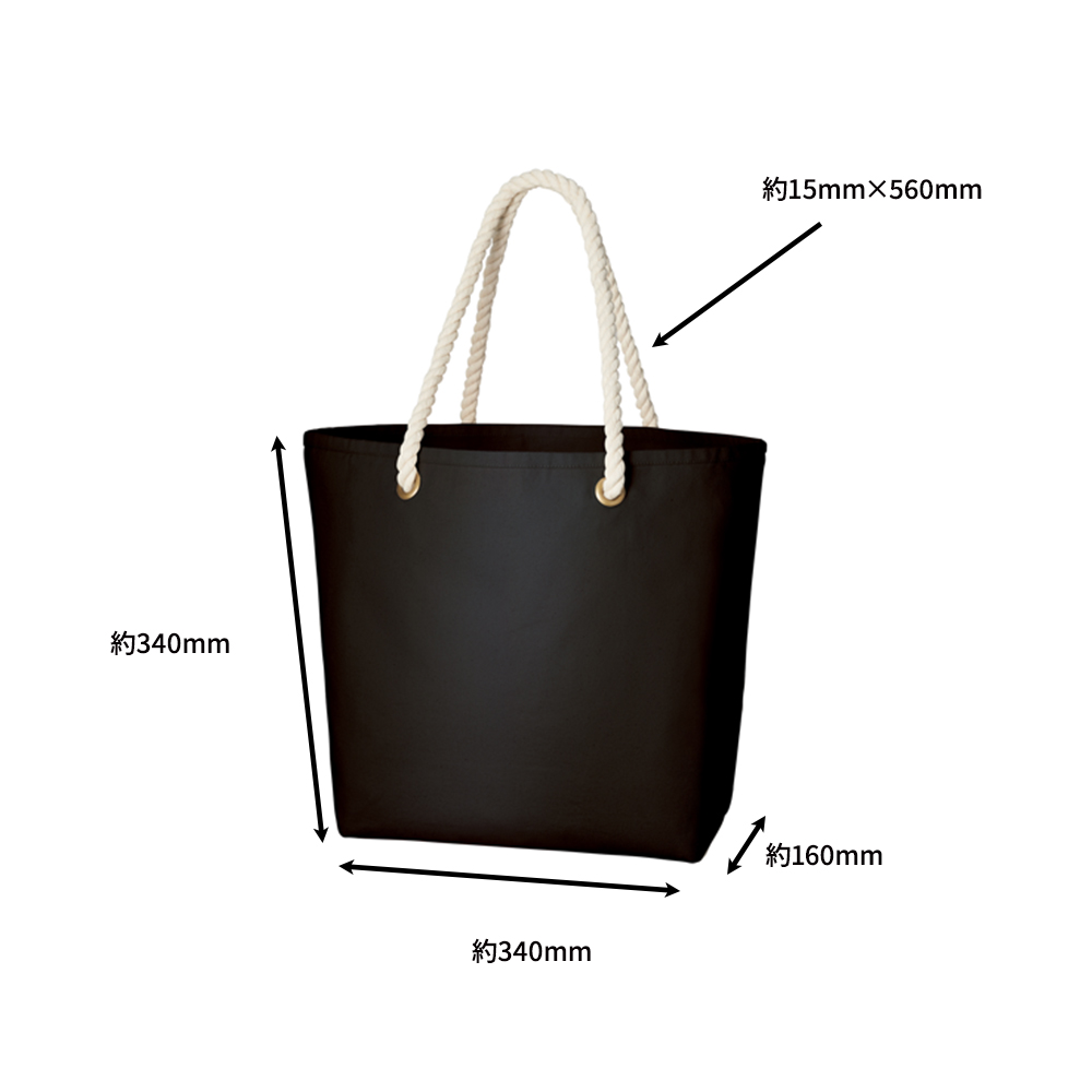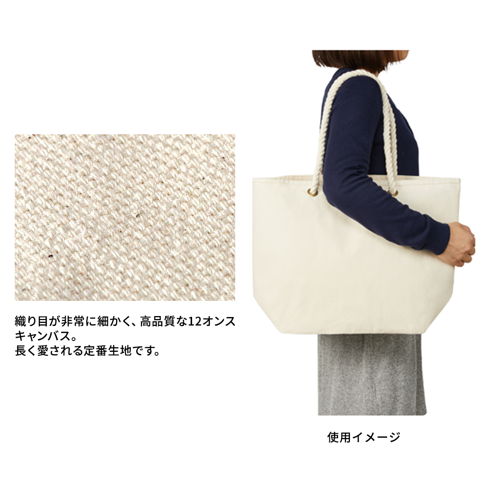太めのロープハンドルがさわやかな印象のおしゃれなマリントート。12オンスの厚みのある丈夫なコットンキャンバス生地を使用しているため、中身が透けません。