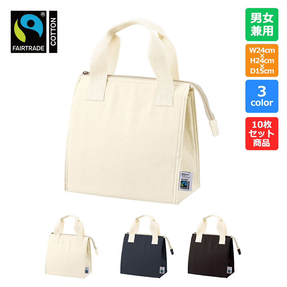 フェアトレードコットンスクエア保冷トート(S)【10個セット】【TR-1403_10】