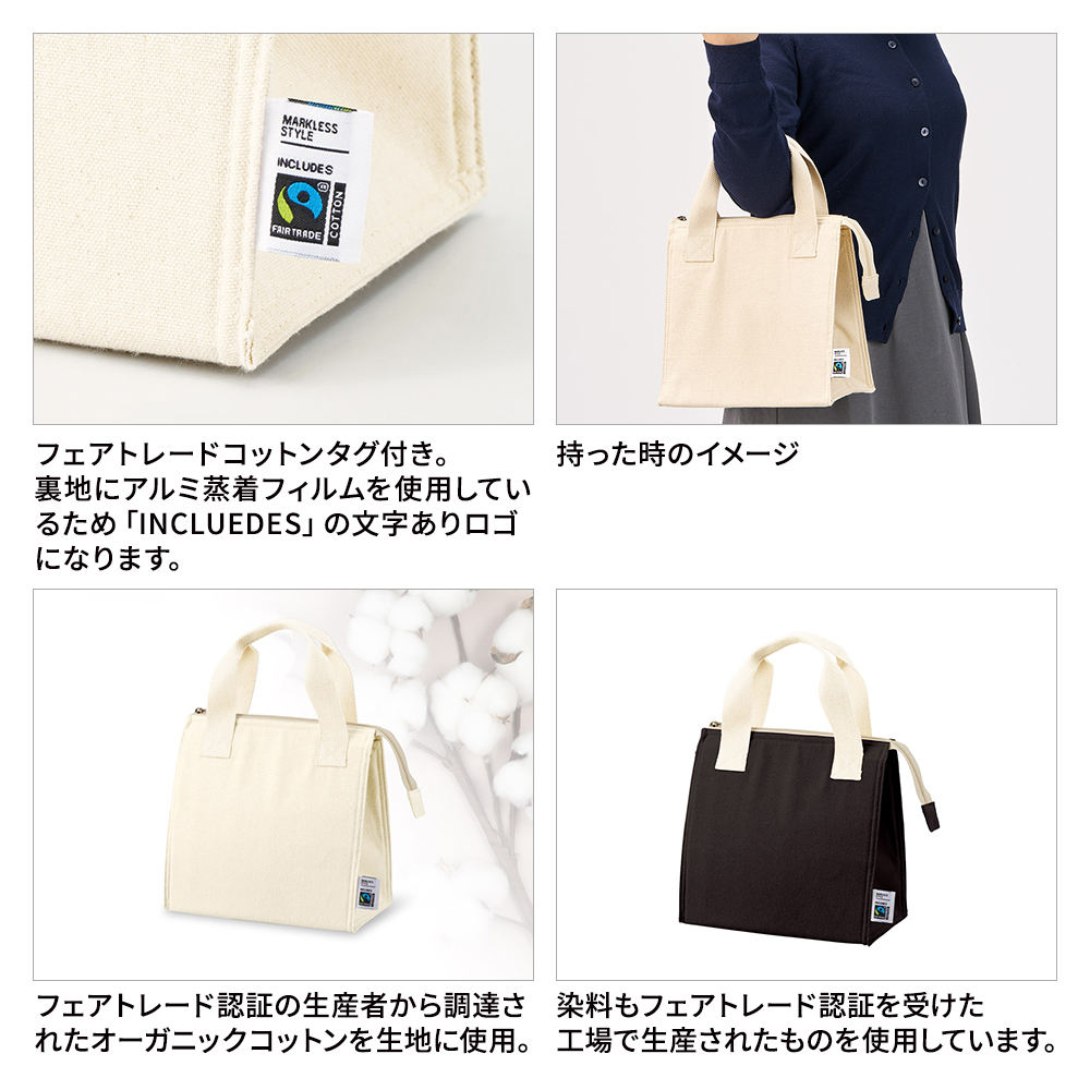 フェアトレードのオーガニックコットンを100%使用した保冷バッグです。