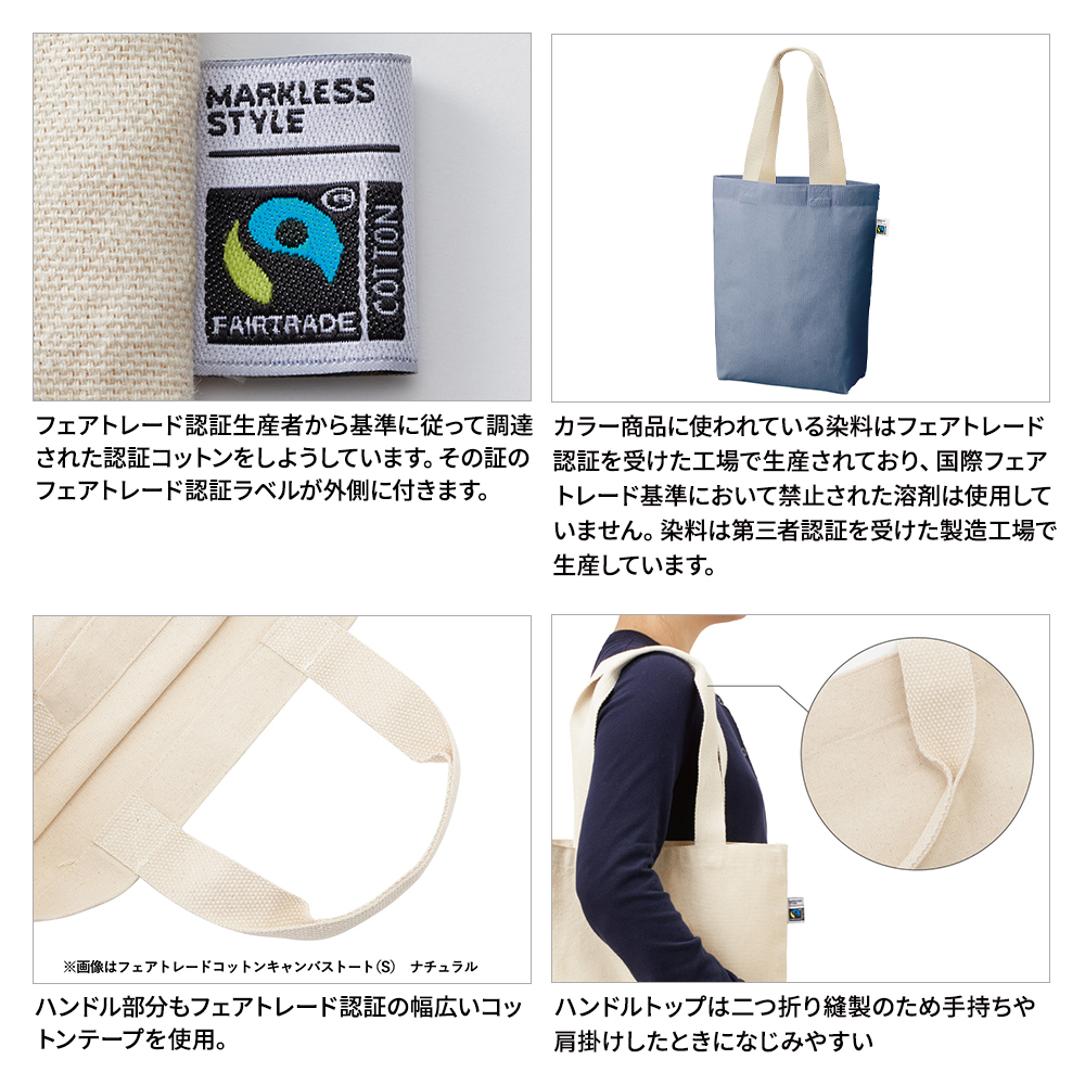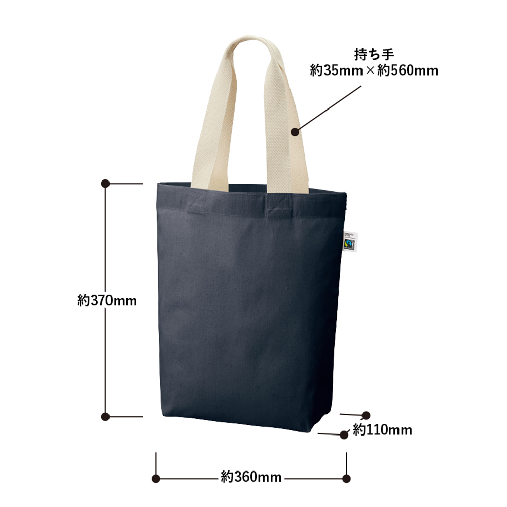 フェアトレードのオーガニックコットンを100%使用したA4トートバッグです。