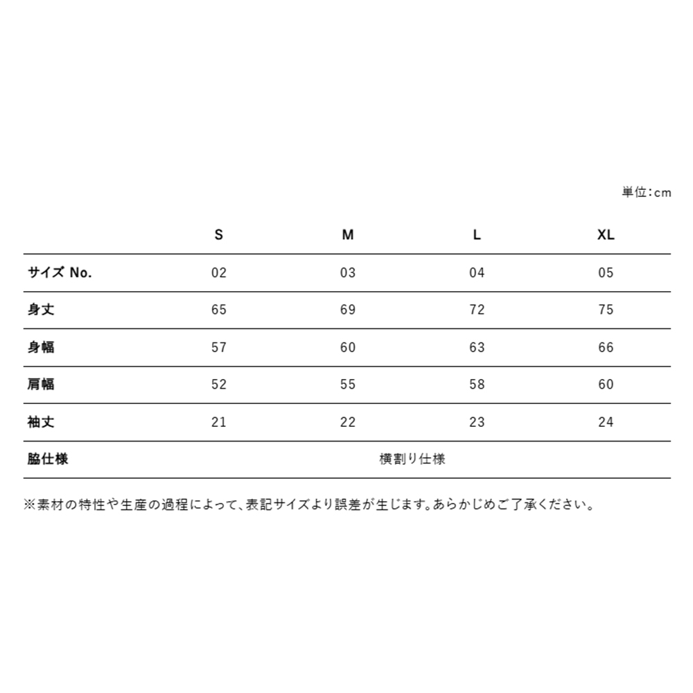 いつものサイズを選べば、身丈をすっきりとさせたボックスシルエットのサイジングで着用できます。
