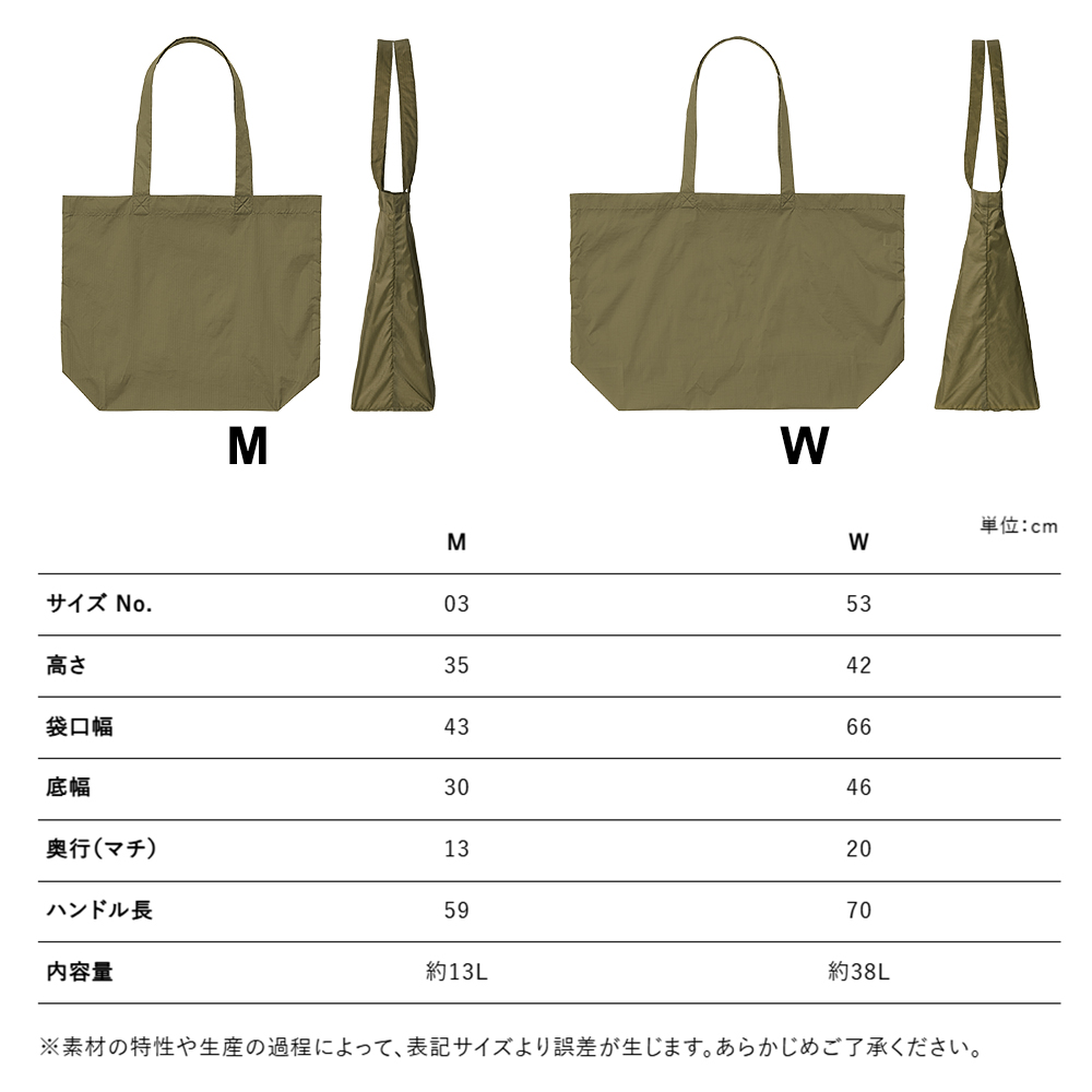 M:高さ35cm×袋口幅43cm×奥行(マチ)13cm/ハンドル全長59cm