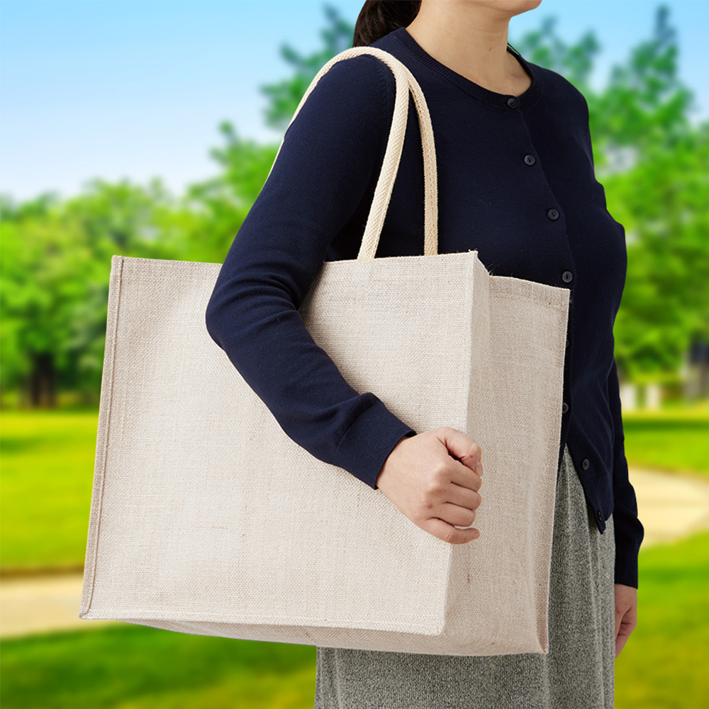 麻の一種であるジュートを使用したトートバッグです。地球にやさしい天然素材を使用しています。