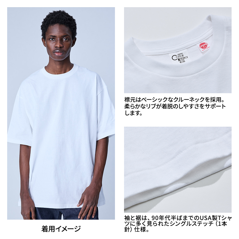 特徴:オープンエンド糸使用、COTTON RESEARCH CLUBの代表的な日本製ボディー