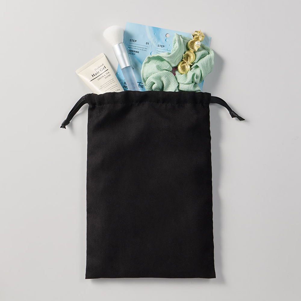 刺繍、プリント加工を入れて、お店のオリジナルギフトパッケージとして、企業のノベルティグッズとして、ホテルやサロンのアメニティ入れなどにも。