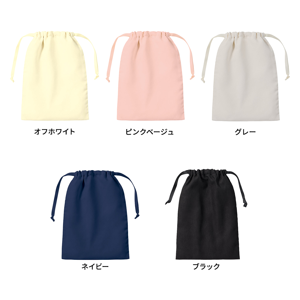 カラーラインアップは5色です。サイズ展開もS~Lまであるので、サイズ違いでオリジナル巾着を作成するのも素敵です。