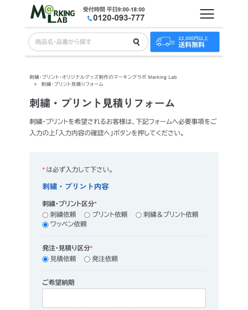 同じものをリピート注文する際も、お見積りフォームの備考欄にその旨を書いてお申込みください。前回のご注文番号があれば、ご入力ください。注文がスムーズにできます。